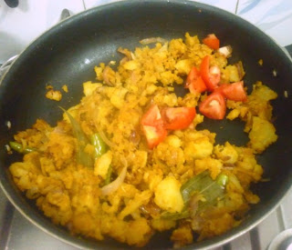 Now add chopped tomatoes and cover with lid. This takes about 15 mins to get cooked.