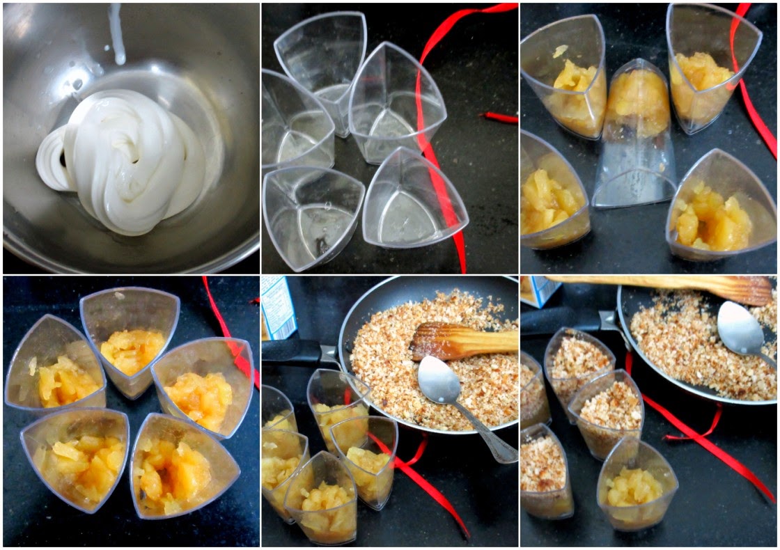 So this time I have been more cautious. Also Danish Apple Cake is served in an Ice Cream bowl. I don't have transparent glasses, only molded glasses, which doesn't show the layes properly and I wasn't keen on disturbing Amma at that time. I went ahead using the Short glasses that Veena gifted us and was so glad to use it.
