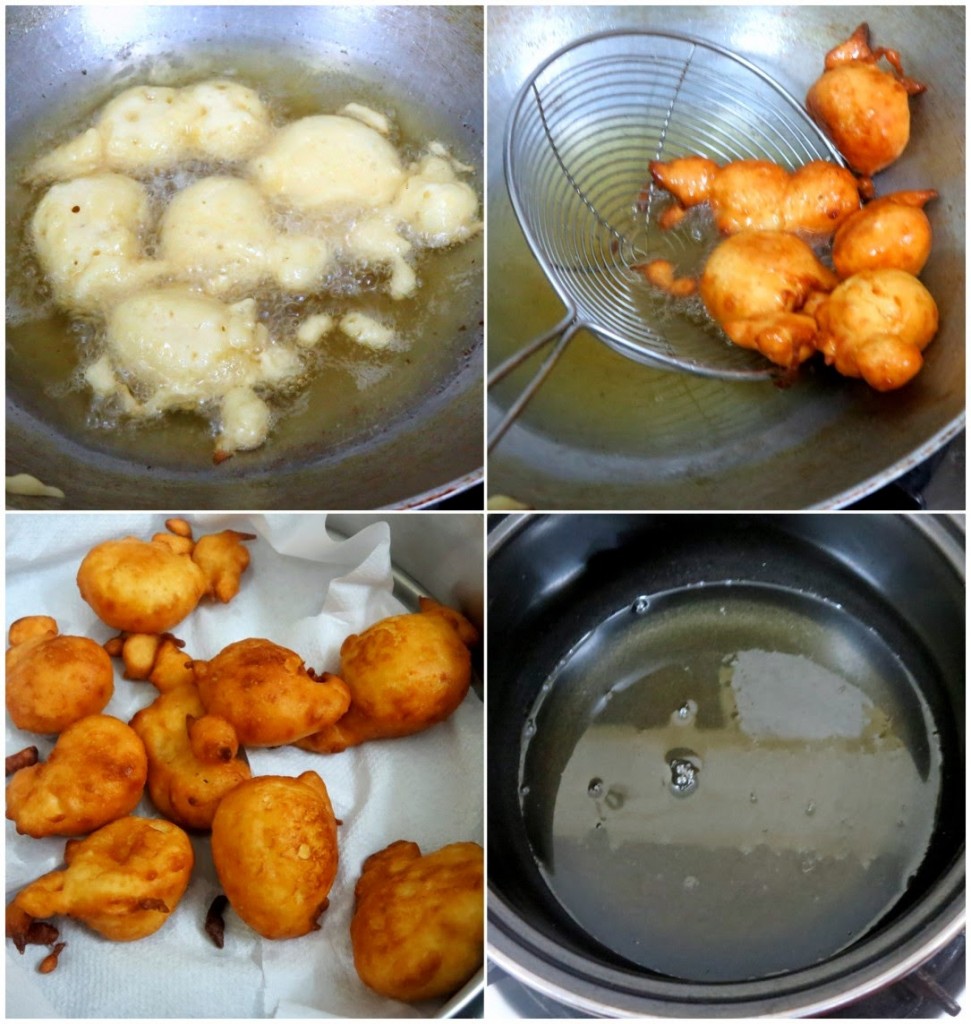 Set it aside to rise, this takes about an hour or so. Heat oil, using spoons, scoop out the batter, and gently drop into the oil.