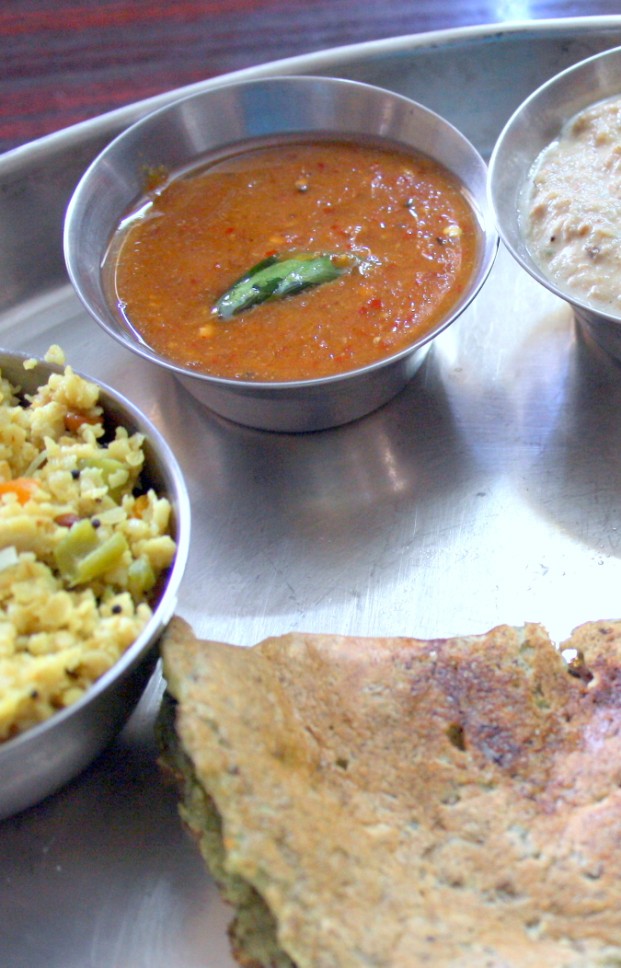 Last month when I decided to make some breakfast thali, I was really clueless as to what to make. We have already prepared all the possible breakfast thalis. So when I was mentioning to Amma that we might have to make some thali featuring breakfast, I was asking if there is anything new other than the Pesarattu or make it along with something else, she took me seriously and soaked the moong dal for the Pesarattu.