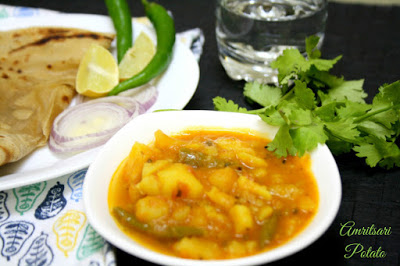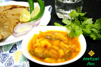 First in the series is a gravy called as Amritsari Aloo. I think I have had this written in my file a long time ago. When I checked the net if this recipe is the same, some showed up as dry gravy as well.