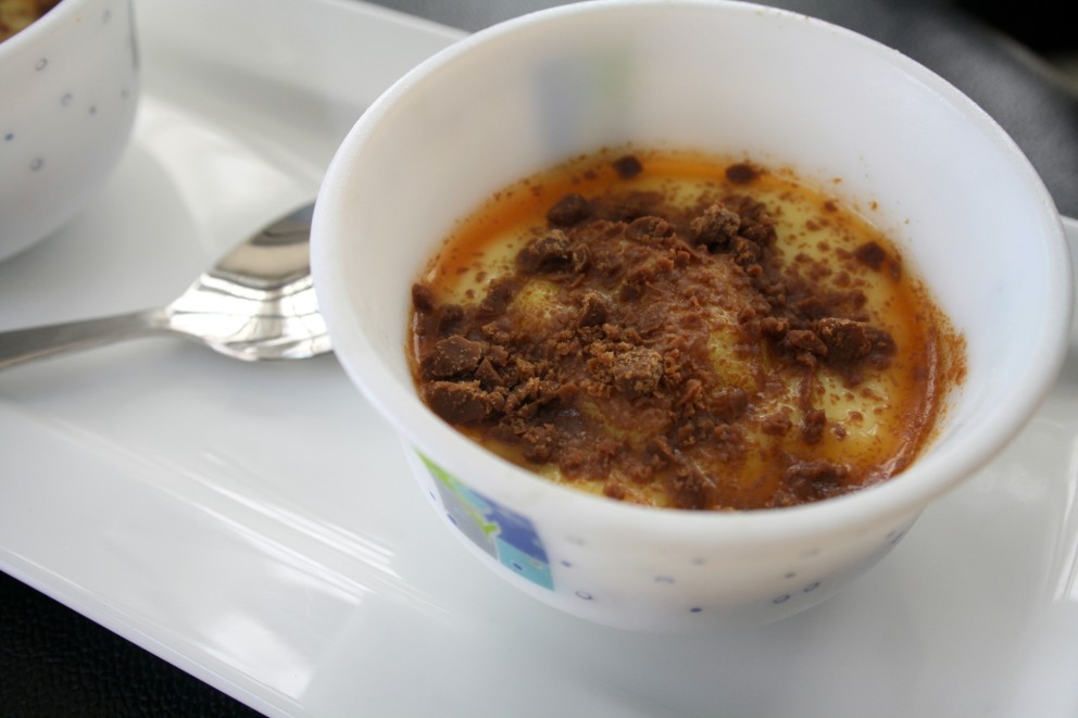 Caramel Custard with Chocolate scrapping.
