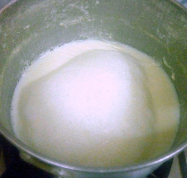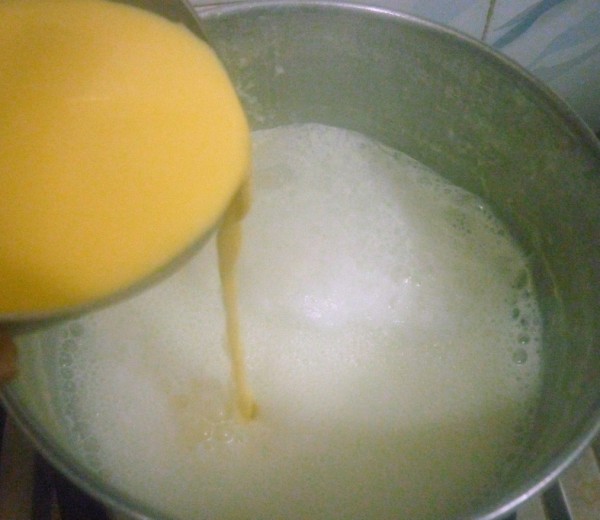 Now add the custard milk mixture to the boiling milk. Cook for 5 minutes till it thickens.