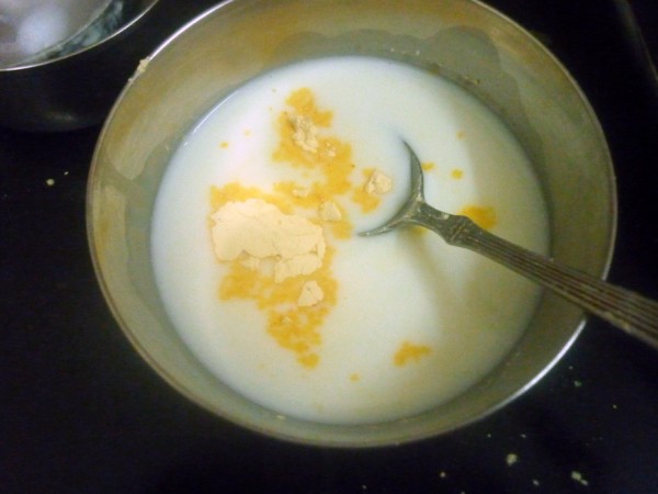 Mix custard powder with 20 ml milk and keep it aside. Make sure the milk is not hot, else you won't be able to make a smooth paste.