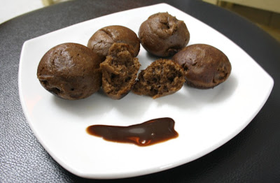 I am not sure at what point I exactly got this idea of making the cake in kuzhi paniyaram pan, but trust me, since then I couldn't rest. When I finally got down to making the cake, it was 10 pm, and decided to serve this as dessert, when hubby dear comes back home. Seeing the cake in the kuli paniyaram shape, he refused to eat it, saying I should know that he and Chinnu are very particular about the colour and shape of the food offered. I had to literally cajole and threaten him to eat it. Very reluctantly he took half and I could see the reaction change. He instantly said it was so much tastier than the convection made cake and wanted more!