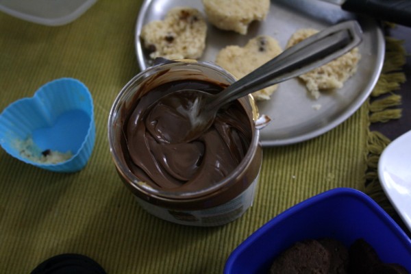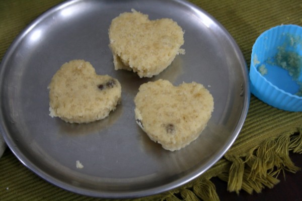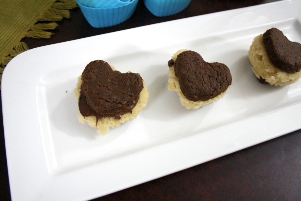I used a heart shaped mw cups and some raised above the regular, so I had to cut through the middle.