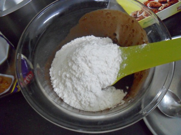 In a bowl, take the flour, mix all the ingredients and gently mix in together.