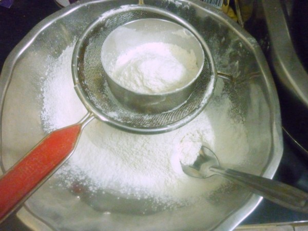 In a bowl, shift the flours together with sugar and milk powder. Into the butter, slowly add the flour and blend well.