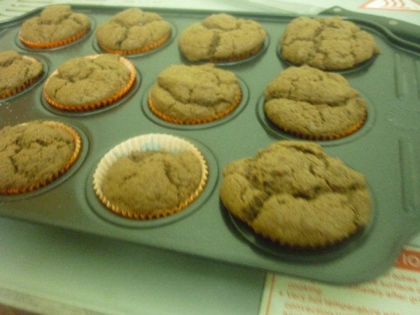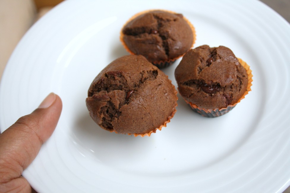 Add milk slowly to get a dropping consistency. Line the muffin tray with liners, drop in batter to 3/4 of the liners, place a chocolate slab and cover over the top.