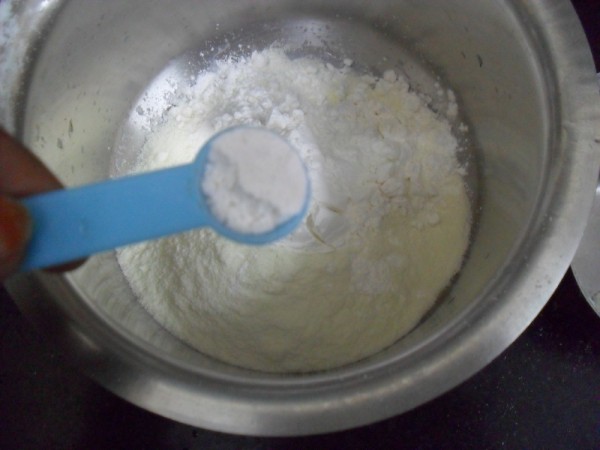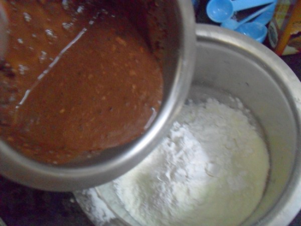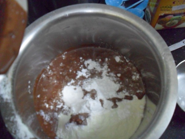 Now add this mix into the milk powder and combine everything together. Using a blender, blend for a couple of times.