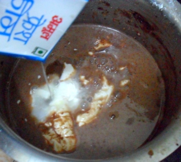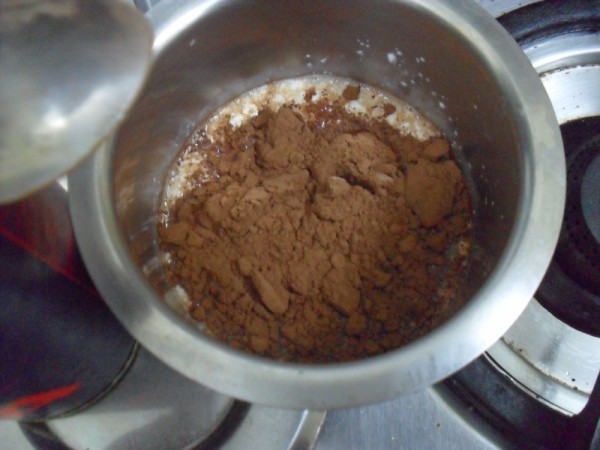 In a small pan, take the cocoa powder and mix with milk to get a lump less paste.