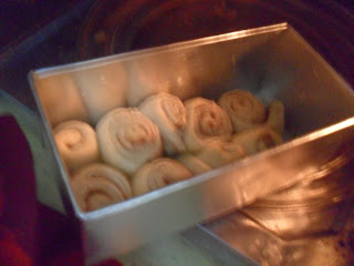 On a greased tray place all these cinnamon rolls.