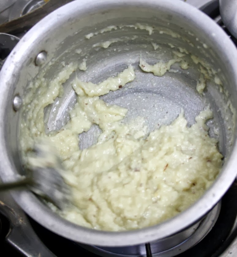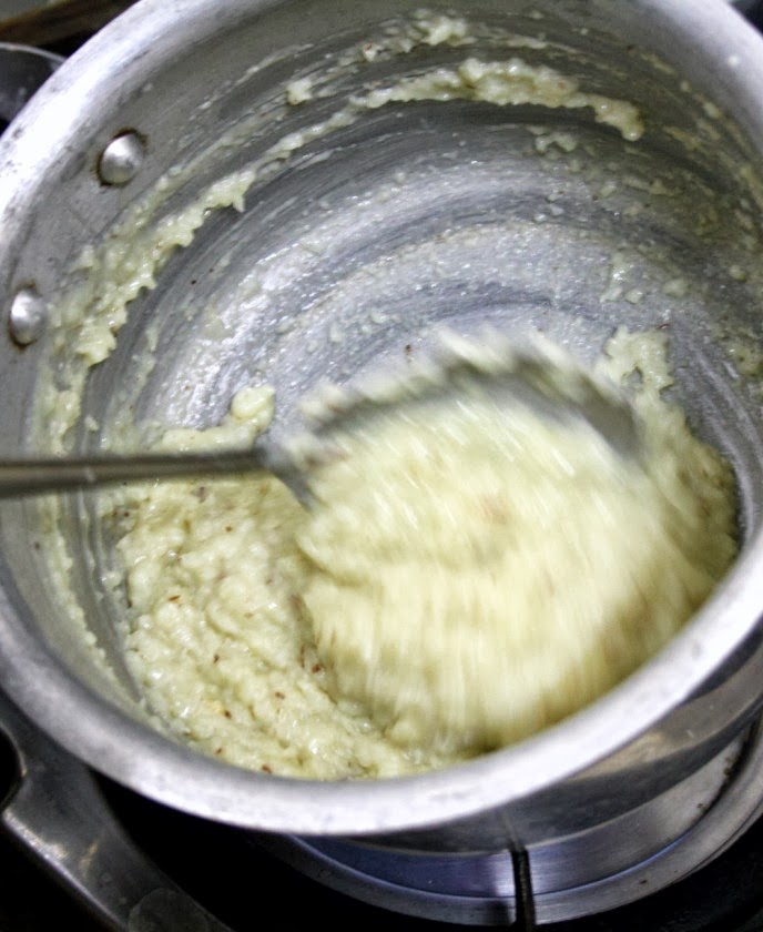 Add the melted saffron and cardamom powder. Cook for few mins.