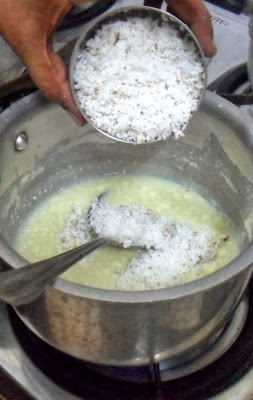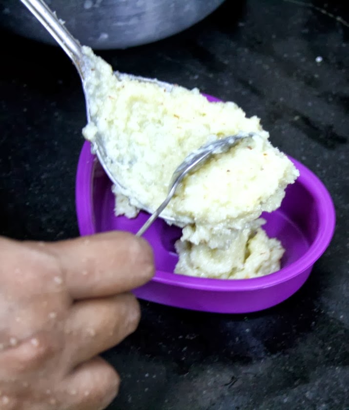 The entire cooking didn't take more than half hour, provided you have grated coconut on hand. Rest of the items were easy to add and stir everything in a quick sweet.