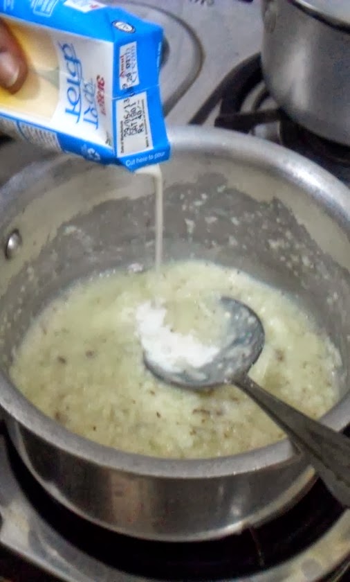 The add the milk powder, paneer paste, mix well and cook for couple of mins.