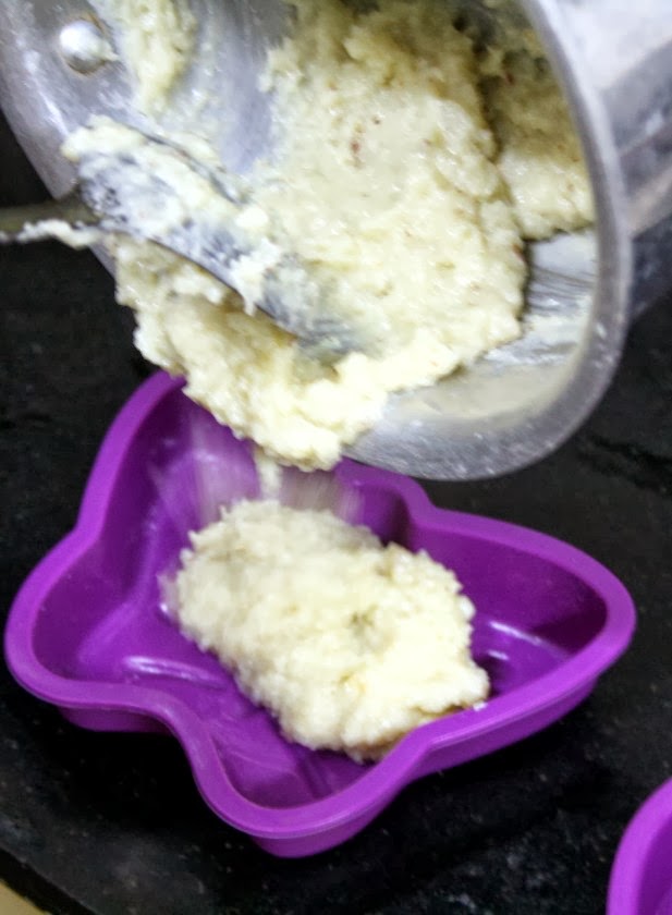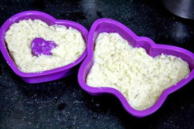 When I was going through my baking trays and pans, my kids saw these moulds and wanted me to make cakes for them again in them. Instead I went ahead and used it for this sweet. Seeing these when it was getting set, they assumed it was a cake. I was sad seeing them being disappointed and wanted to bake something right away. Then I decided to perk them up, I must do some chocolate dish. Well it was done and it was soon their favorite. While hubby dear liked this a lot.