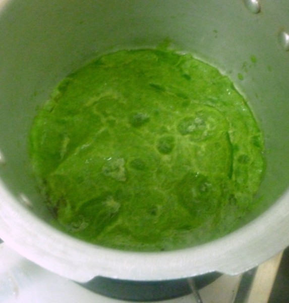 Grind small onion, green chille, cleaned coriander leaves and garlic into a smooth paste with just enough water.