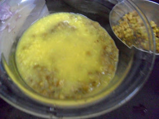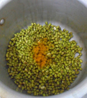 The original recipe calls for Cardamon powder to be added to the yellow dal, I skipped. Also Vaishali asks for the yellow dal to be soaked, I normally never soak as pressure cooking does the job.