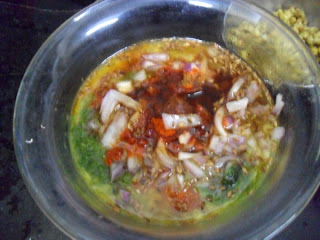 For the second day of Combo Dishes, I selected to make Daal Moong with Satpura, a typical combination of the Sindhi Cuisine. As expected this was suggested by Vaishali and I went on to search for the recipe. Somehow this didn't turn out in the search and I had to ask her for the link. checking this, I was really intrigued as the dal is a sort of assembled dish.Vaishali says Daal moong is a typical Sindhi breakfast, however in recent times with many preferring lighter breakfast, this combination has shifted to lunch. I do agree with this, having made this for the lunch today. The dal was superb and the rotis were spicy and heavy. The dal is a combination of two dals cooked separately, garnished with spices, raw onions, and chutneys. The final mix of all the assembled ingredients makes it a feast!