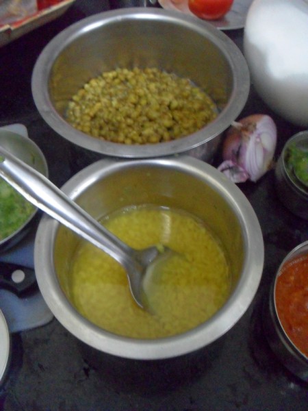 The original recipe calls for Cardamon powder to be added to the yellow dal, I skipped. Also Vaishali asks for the yellow dal to be soaked, I normally never soak as pressure cooking does the job.