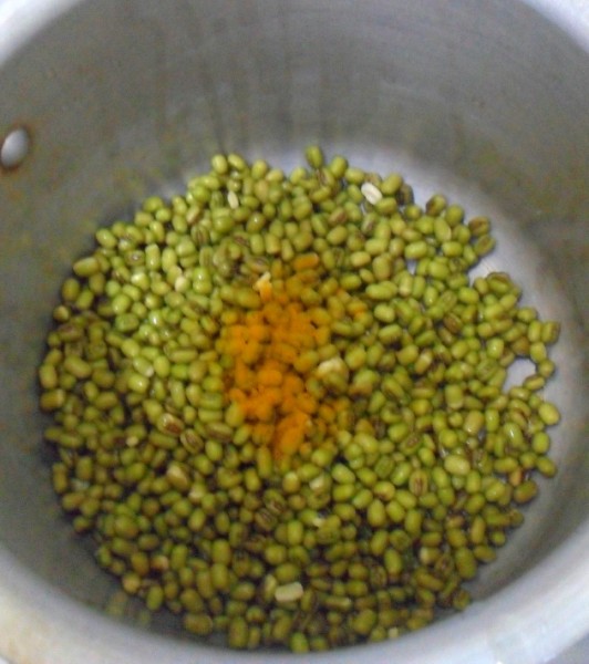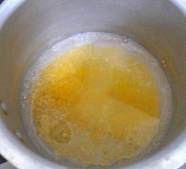 Wash the dal, add turmeric powder and pressure cook till the dal is soft.
