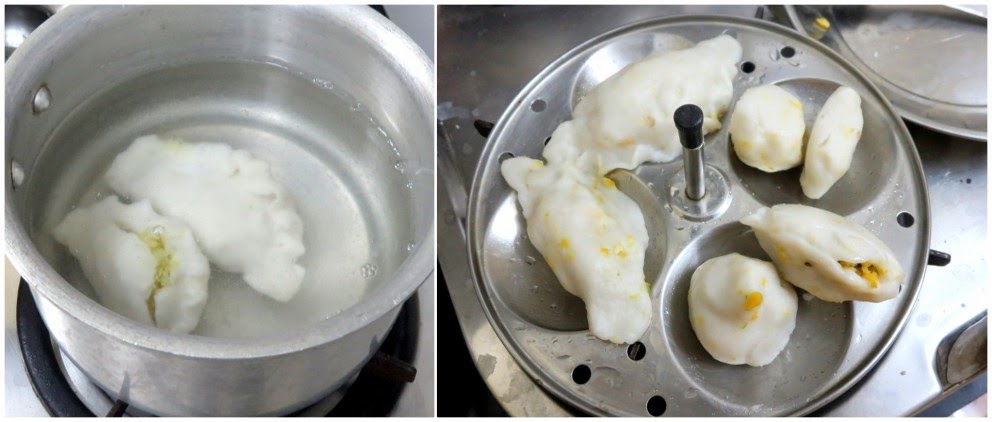 Steam these pithas in a greased steamer till the daal filling gets cooked and the knife comes out clean.