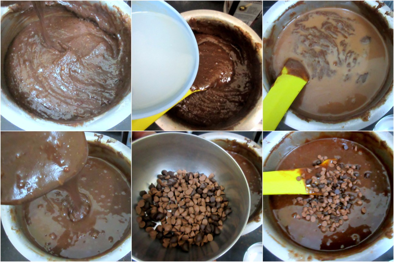 I knew if I have to keep them happy, give them chocolate. It happens all the time and I need not bother baking any other flavour. I was inspired by this recipe. I added chocolate chips to make it more rich. It is a chocolate cake to relish no doubt