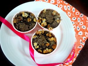 - Fill till 3/4 cup with batter and top with walnut and sugar.