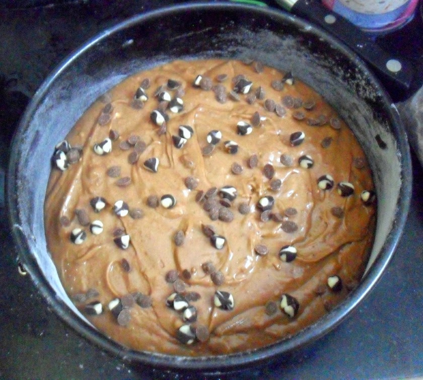 Transfer the batter into a greased mould, top with chocolate chips and place on the plate in cooker. Cover with lid without gasket and without the whistle.