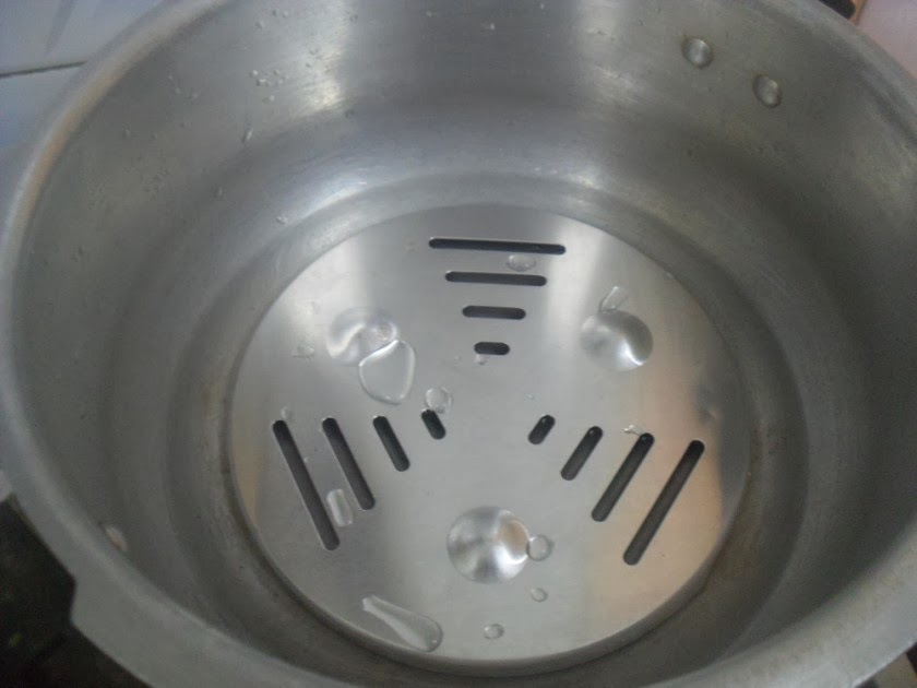 Have the pressure cooker with enough water on low flame with the plate placed on water.