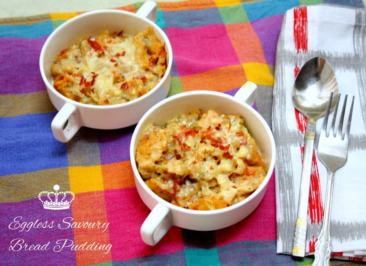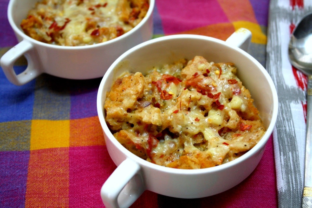 Eggless Savoury Bread Pudding