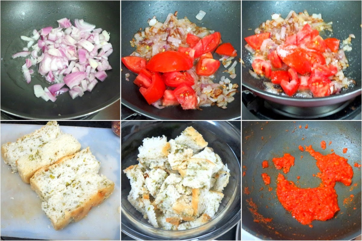 Anyway the dish for the day got served as breakfast and I even took for my lunch. So in sense this does make a great dinner idea. I got inspired by Gayathri and used my Coriander Cumin Bread as the base for this. Since the bread was spicy on it's own, I didn't add any chili spice other than some Red chili flakes and pepper.