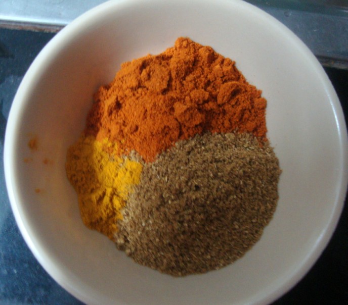 Grind all the ingredients listed under "to be ground" together to a paste using water. When done, add tomatoes and again grind to a paste.