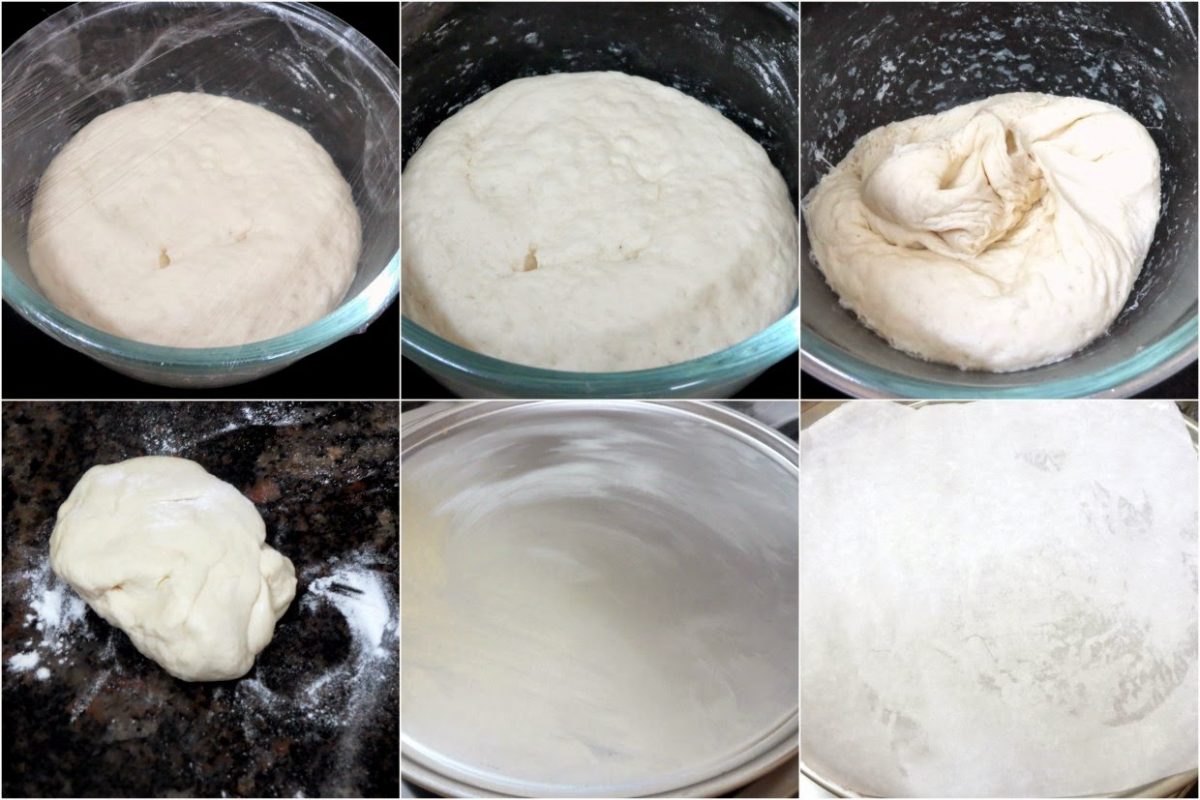 Once doubled, remove the dough onto a well-floured surface. Punch it down to remove the excess air. Divide the dough into 3 equal parts. Work with one part of the dough, while keeping the rest covered in a bowl.