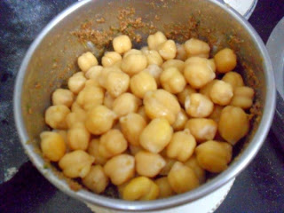 Pressure cook chickpeas for 3 - 4 whistles until soft.
