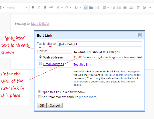 How to create Hyperlink or Text Links in your post