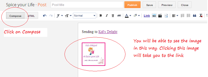 Images Links are little more complicated wherein you will have to go to the HTML part of your editor and give the code.