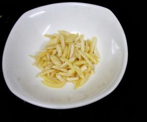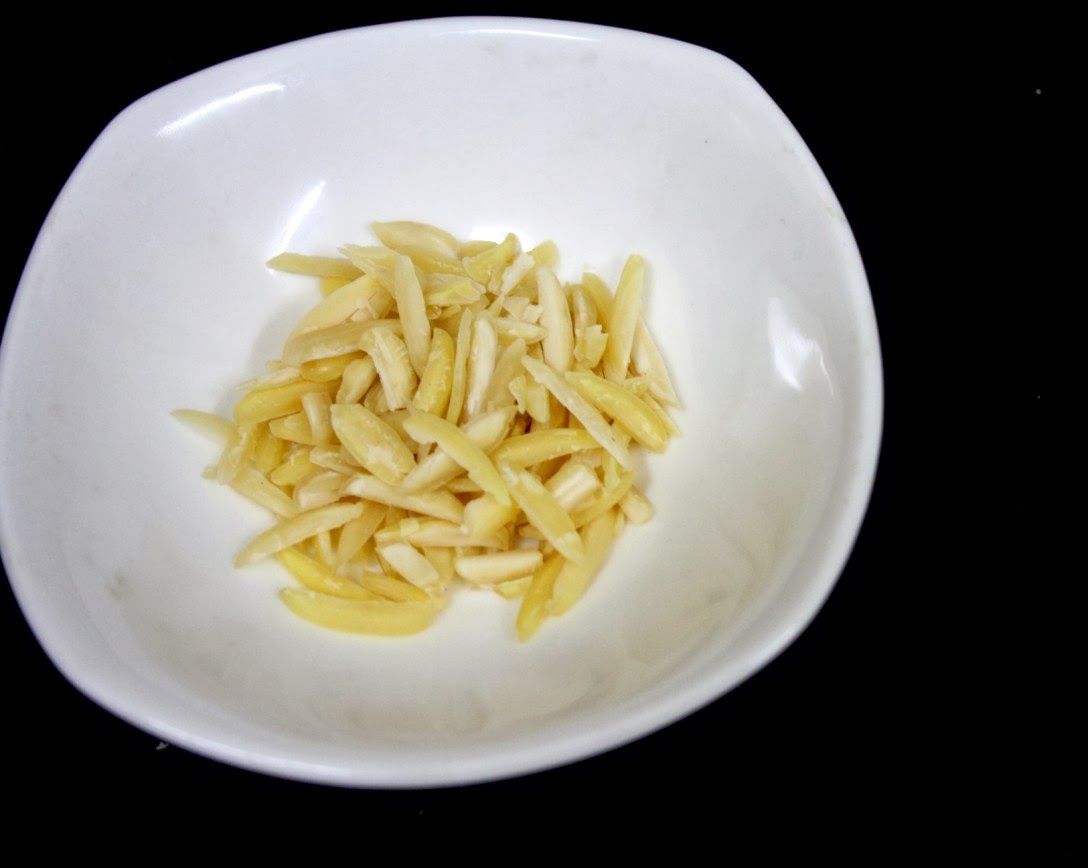 - Remove all the skin and chop it into juliennes very finely. It's easier to chop it finely when the almonds are still warm.