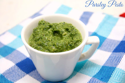 Lovely pesto with parsley and almonds! Love the vibrant green color 🙂