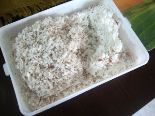 So Athamma decided that only way of storing the excess coconut was getting it grated and freezing it. The grated frozen coconut stays white and fresh for many months. I haven't actually tested the shelf life but I know there is endless boxes of frozen grated coconut at home. I was so happy when my friend told me that this is a fantastic idea that helps her so much these days for her cooking. She uses grated coconut for all her dishes yet she was finding it difficult to grate everyday. She was overwhelmed knowing this way of preserving fresh grated coconut and said she is eternally thankful to Athamma for this tip.