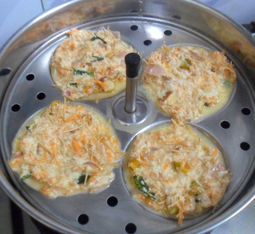 Addition of carrots making the idlies even more appealing!
