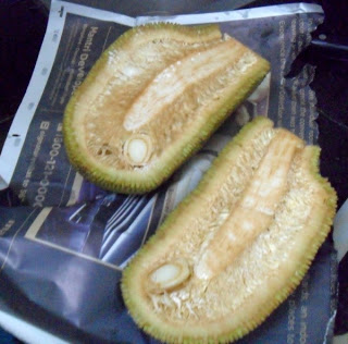 OMG! I am just drooling looking at those jackfruits in the tree...I love that fruit and my mother makes kootu or sambhar out of the seeds. Never had it in this form.