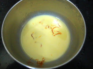 Kesar Kulfi calls for Kesar powder. I googled to find out that Kesari powder is actually the leftover bits after harvesting pure saffron. It is also mixed with turmeric so it does impart color & has some fragrance. I am not sure how accurate this info is, but it's fine for now as I anyway used Saffron strands in this recipe.