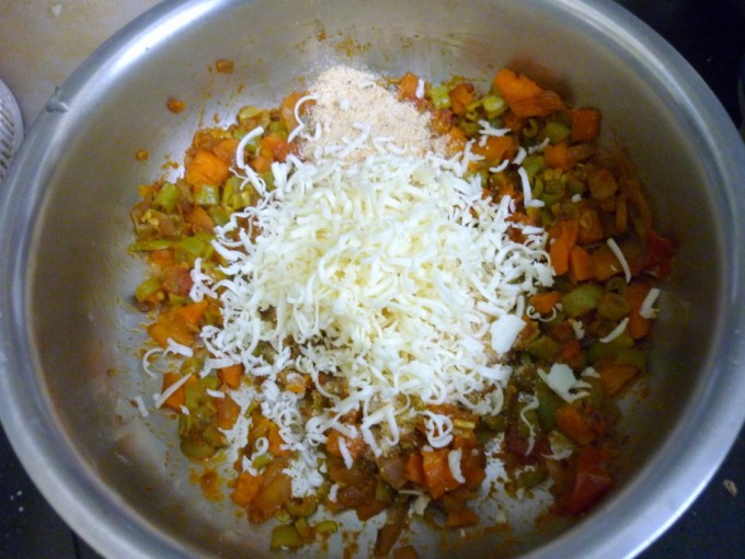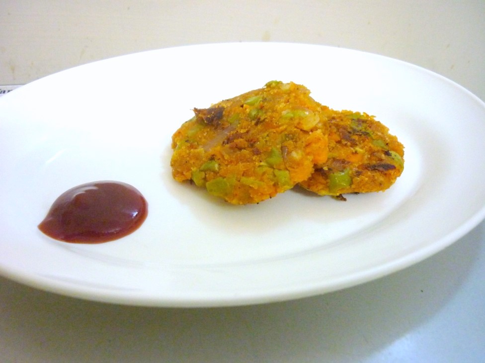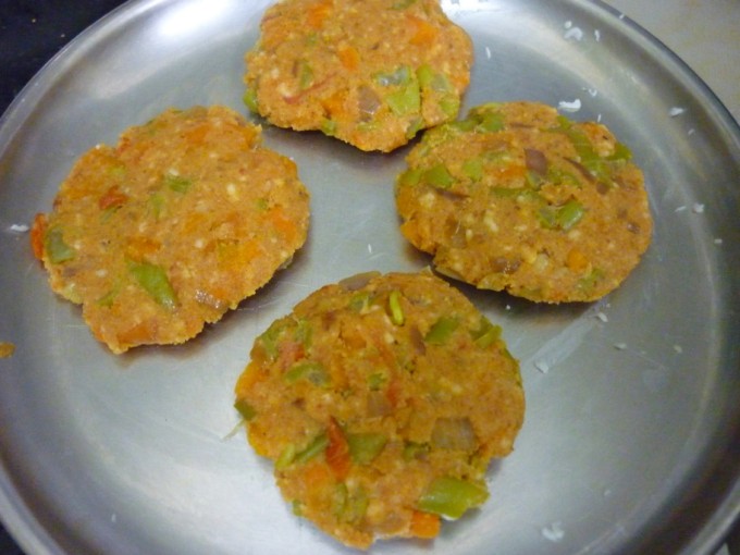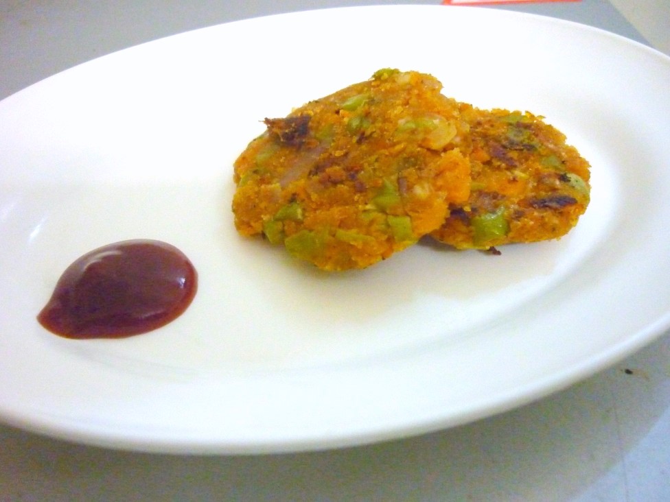 Mash the vegetables and add grated cheese, bread crumbs to the vegetables. Mix well. Divide into balls and pat down as cutlets.