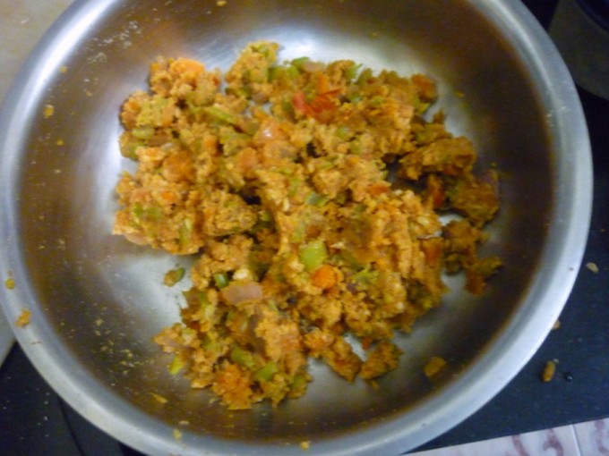 Next in the leftover series is a delicious cutlet with vegetable curry. You can just about use any dry curry or gravy that can be dried up before being made into a cutlet. It's been a hectic day what with the rain lashing out non stop most of the day. It was a day off for the kids because of the rains. Since I had the office working, I went out in the rain and enjoyed the journey through the ride.