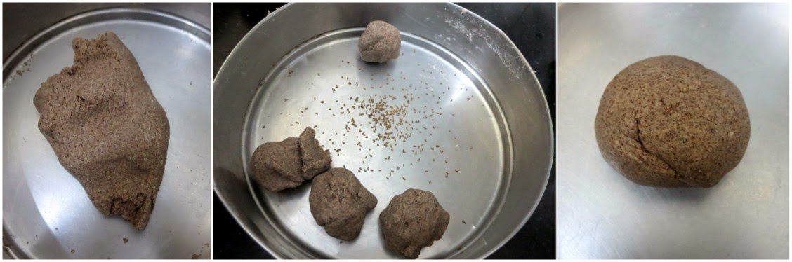 Next add ajwain, salt to the mandua flour and knead well. Rest this aside for 10 mins.