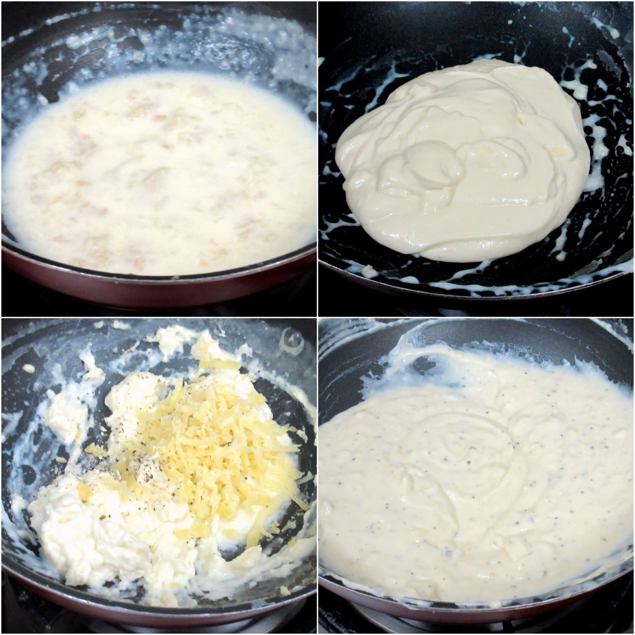 Add the milk to the pan and continue whisking. Once the milk is incorporated, bring to boil. Simmer and cook for 5 more mins. At this stage the mix is mostly in lumps. I allow it to cool and blend to a smooth mixture.