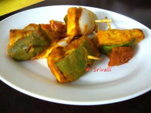 Mix the Paneer cubes along with Onion, Capsicum, Tomato pieces with the marinade and keep it aside for 15 mins.