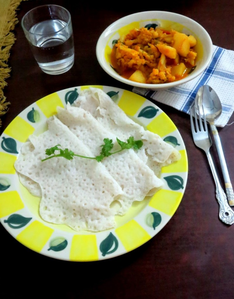 Pitha looks so lacy and resembles the neer dosa..Gobi tarakaree is so delicious and perfect with rotis...