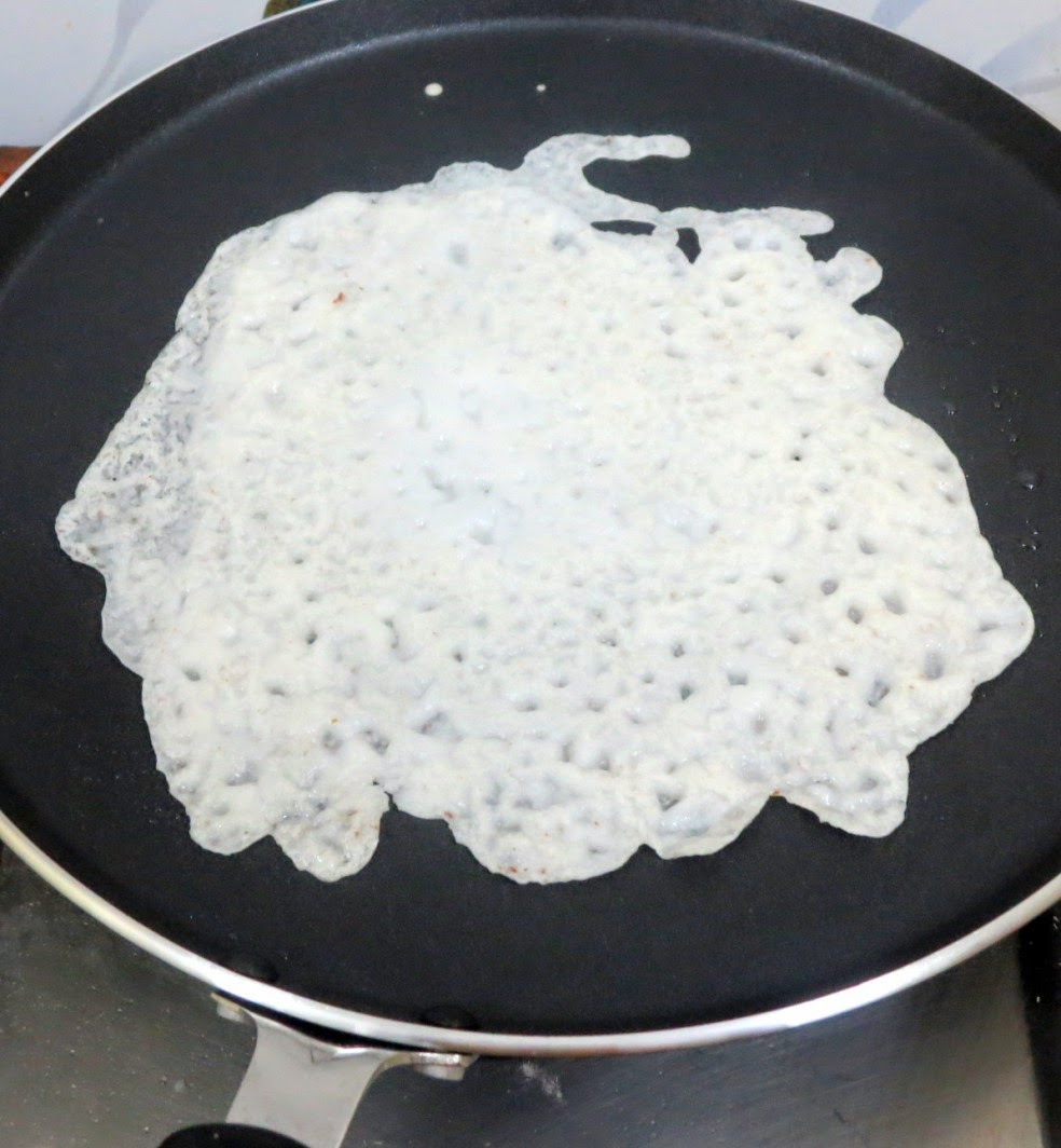 Heat oil in a tawa, pour some batter into it, and cover it.